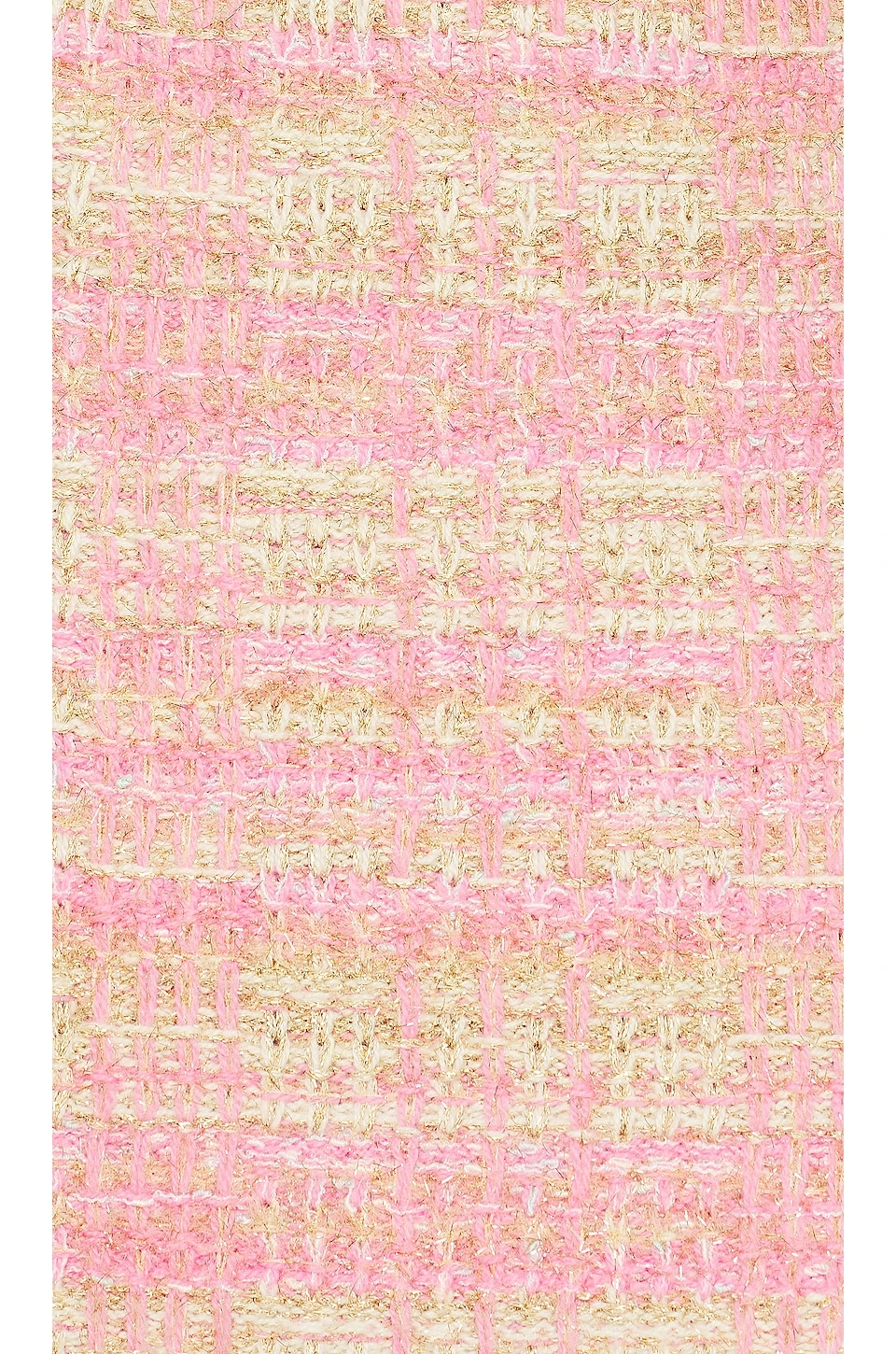 - Tweed fabric with metallic threading throughout and fringe detail at hem