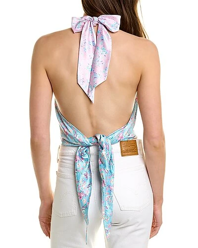 - Boca Handkerchief Top in fuji sunrise print mix with self-tie halter neck and open self-tie back