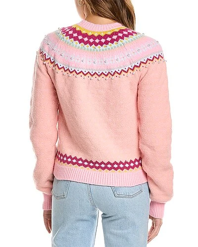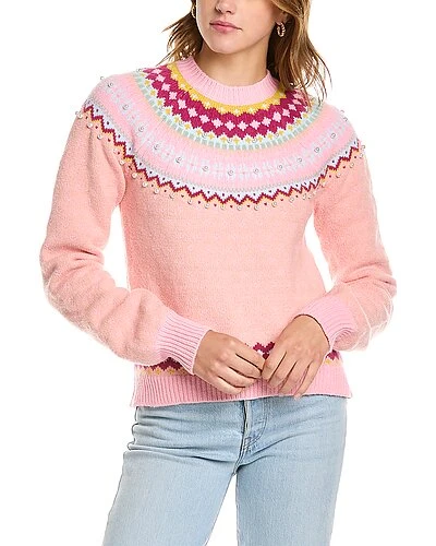 - Crawley Slim Sweater in berry smash Yorkshire fairisle with raglan sleeves, pearl beads, and ribbed trim