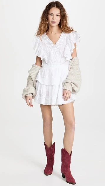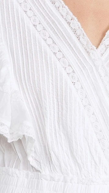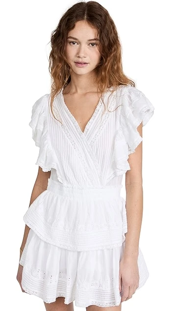 Accented with lots of dreamy details – tiers, ruffles, and pintucks, to name a few – this LoveShackFancy mini dress will be a regular go-to staple of your warm-weather wardrobe.