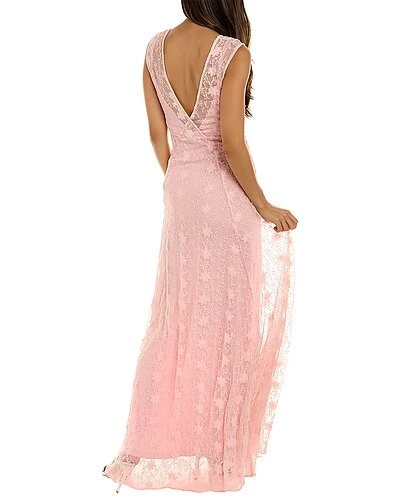 - Irena Dress in blush tutu with sheer embroidered overlay, V-neck, and surplice back