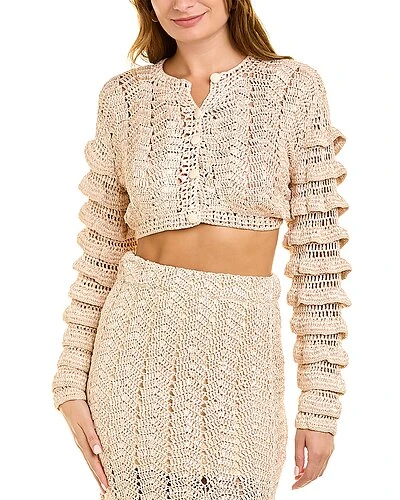 - Junice Crop Cardigan in sand with tiered ruffle sleeves