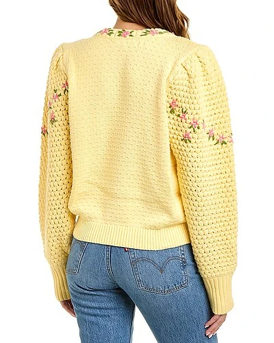 - Kenzly Wool-Blend Sweater in mellow yellow with honeycomb knit sleeves, embroidered detailing, and ribbed trim