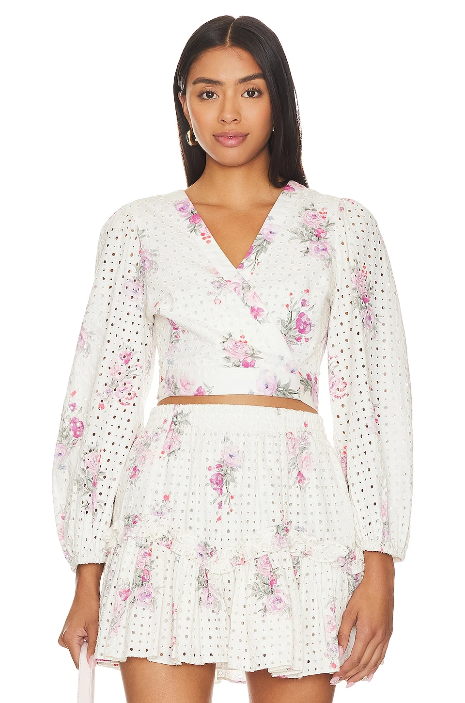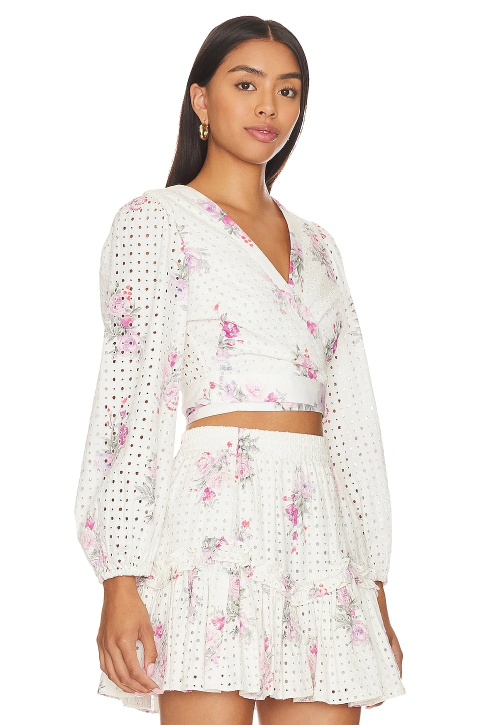 LoveShackFancy Kinza Crop Wrap Top Spanish Lavender