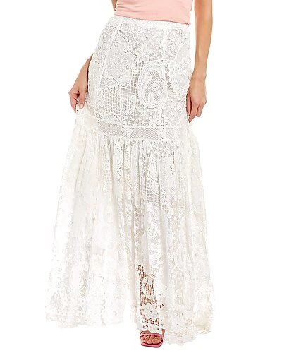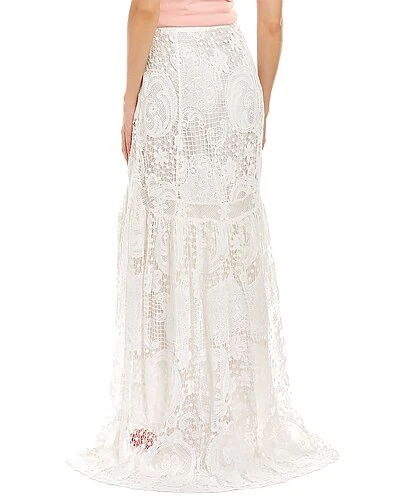 - Odem Silk-Blend Maxi Skirt in true white with lace design