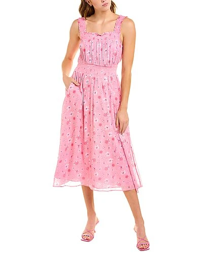 - Pasha Dress in coral blaze with straight neckline, elasticized trim, smocked waist, and dual side on-seam pockets