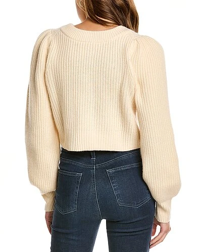 - Robinson Cashmere Top in ivory with ribbed knit design, pleated shoulders, and blouson sleeves