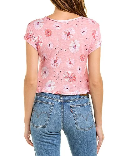 - Runin Cropped T-Shirt in coral blaze with raw edge trim