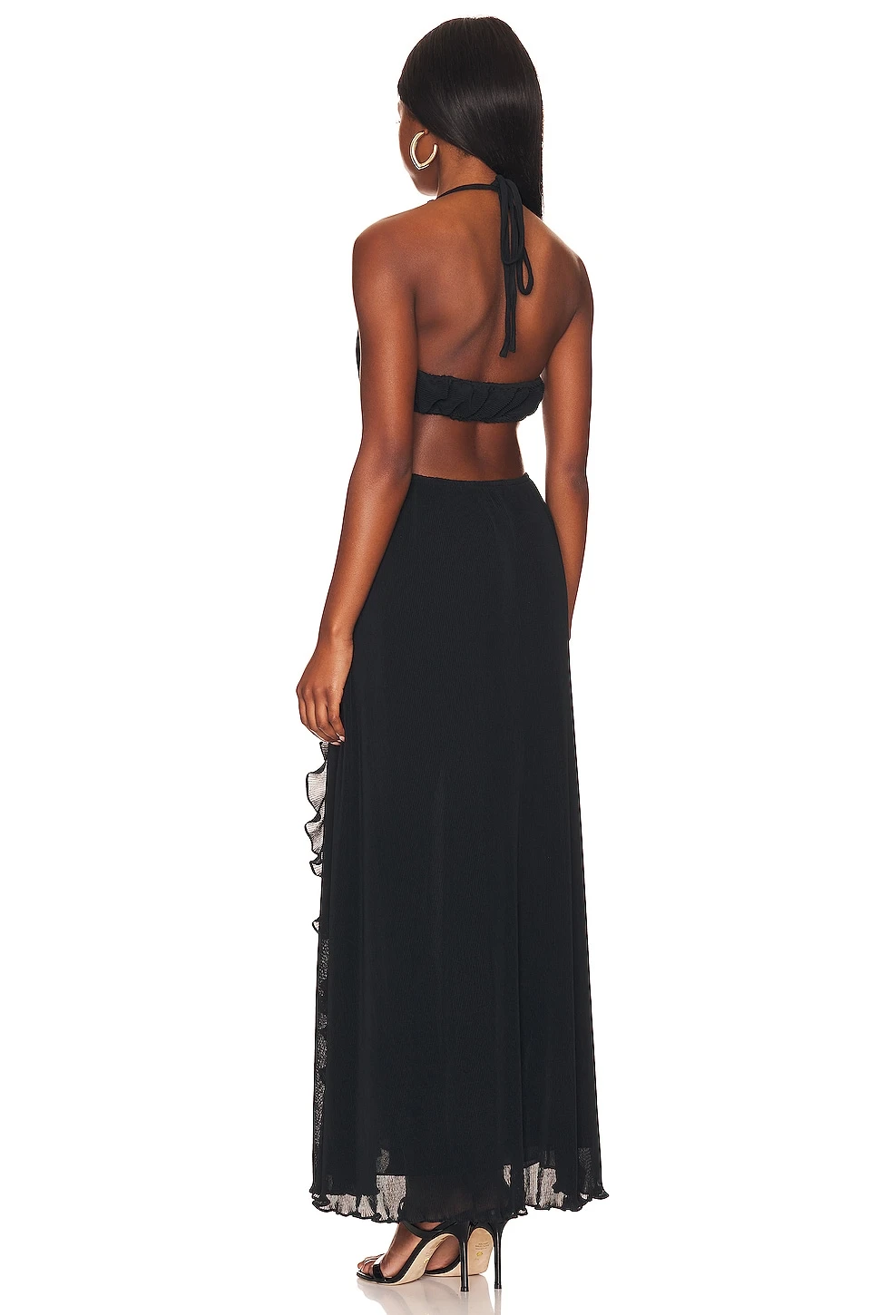 - Lightweight chiffon fabric with ruffle detail and side seam slit