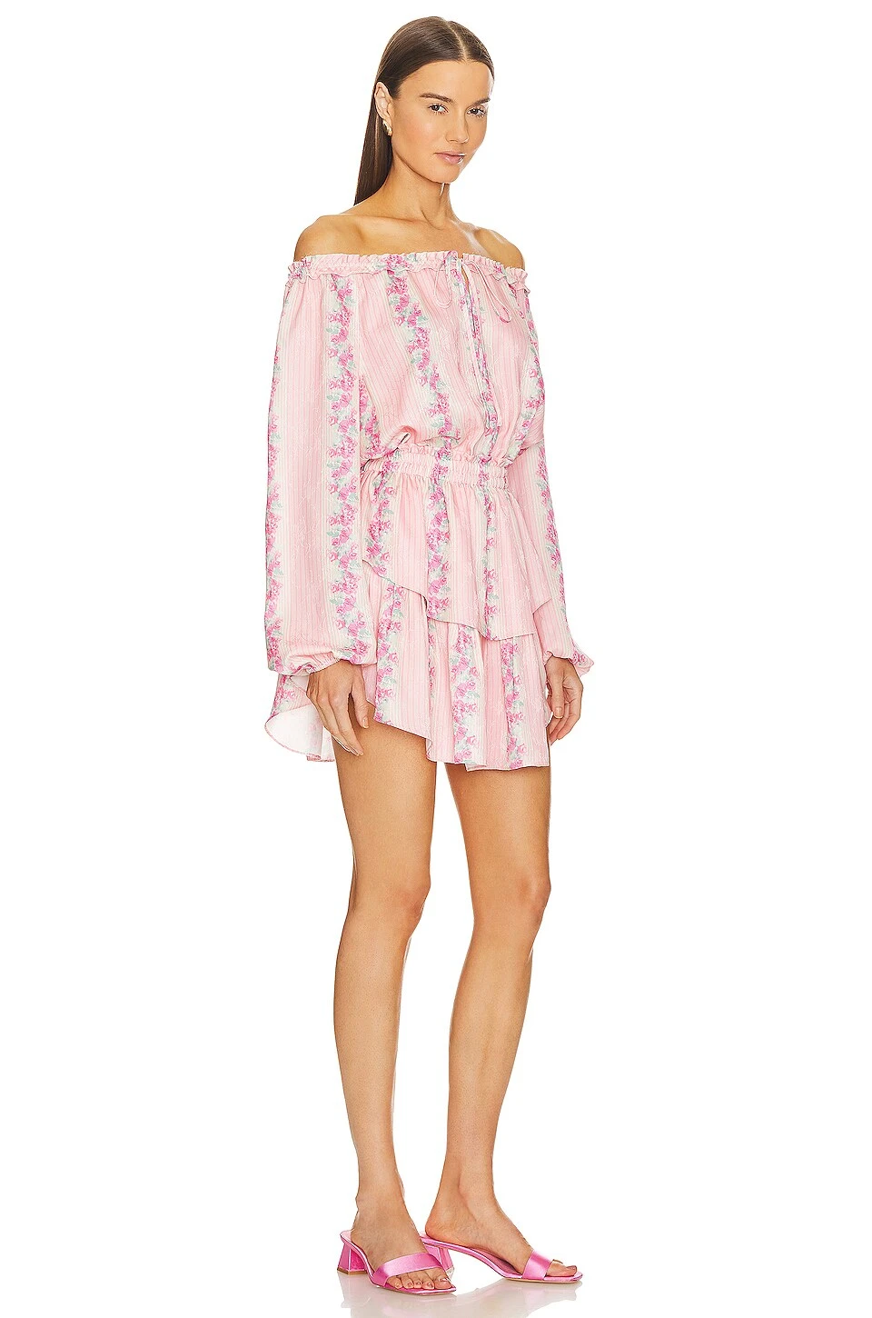 - Off shoulder styling with tie detail at neckline