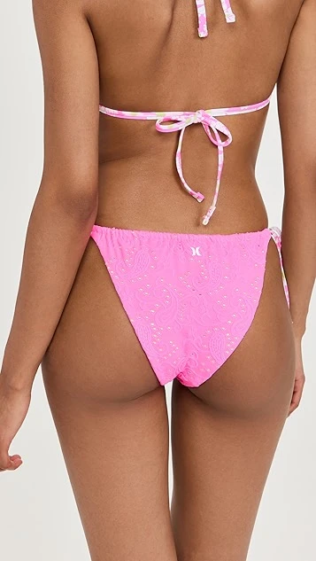 Designed in collaboration with Hurley, these LoveShackFancy reversible bikini bottoms feature a side in bright-pink eyelet and a side with lovely floral patterning.